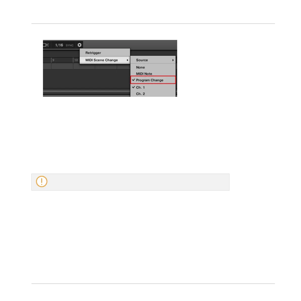 MASCHINE will send Program Change messages when Scenes are triggered from the MA-