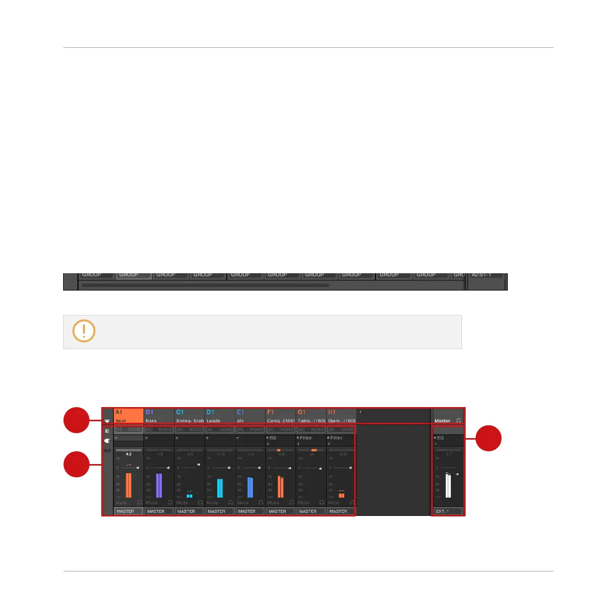 ▪ Group level: The Mixer shows channel strips for all Groups of your Project.