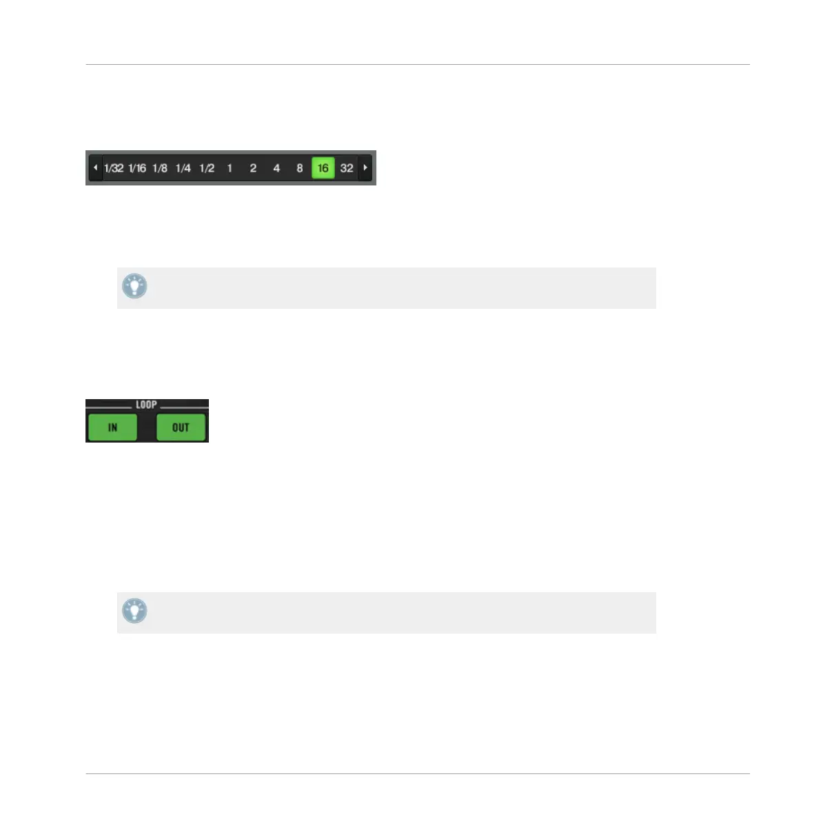 also manually set loop start and loop end points. To do this, use the LOOP IN and