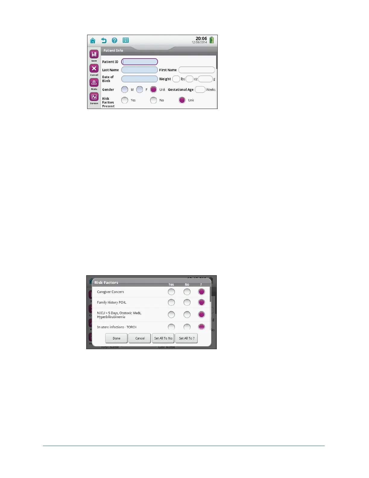 1 Add risk factors when adding or editing patient information, or before starting to screen: