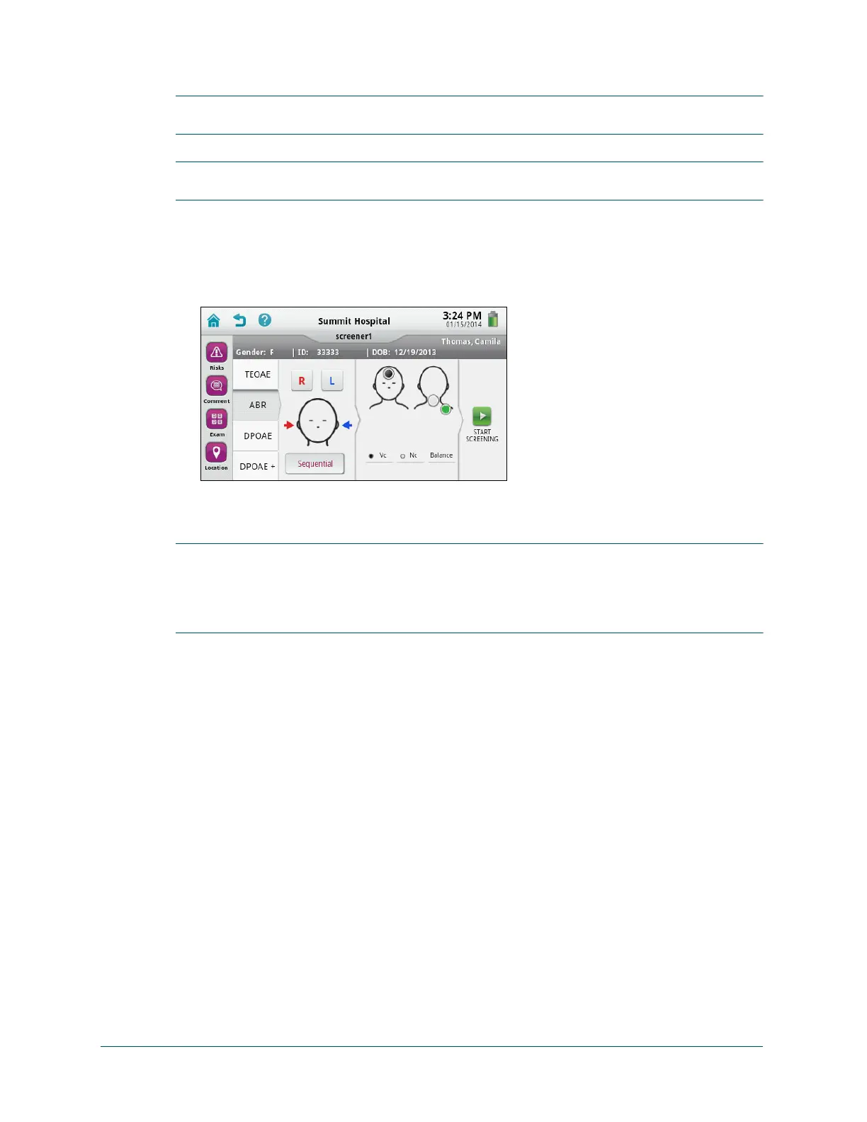 editing the patient information), touch Screen, and then on the test selection screen, touch