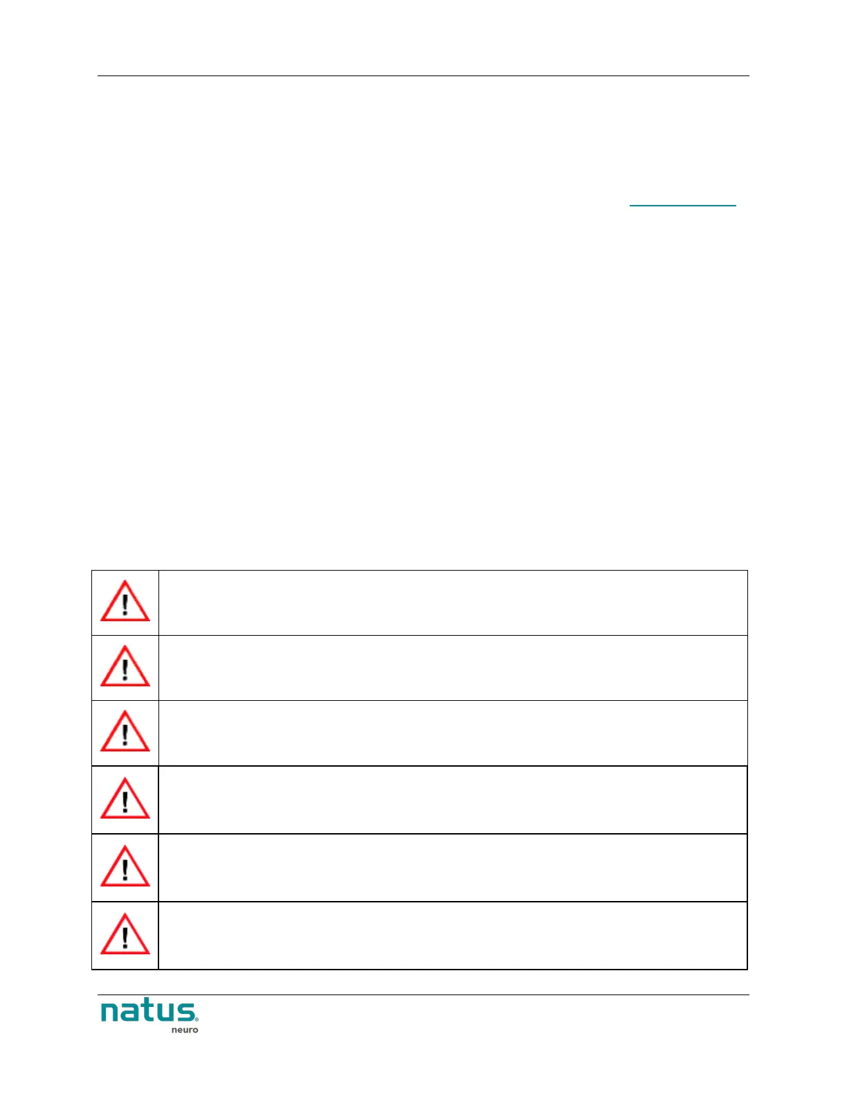 and/or internal component service, call Natus Technical Support at 1-800-303-0306 or OTS@natus.com,