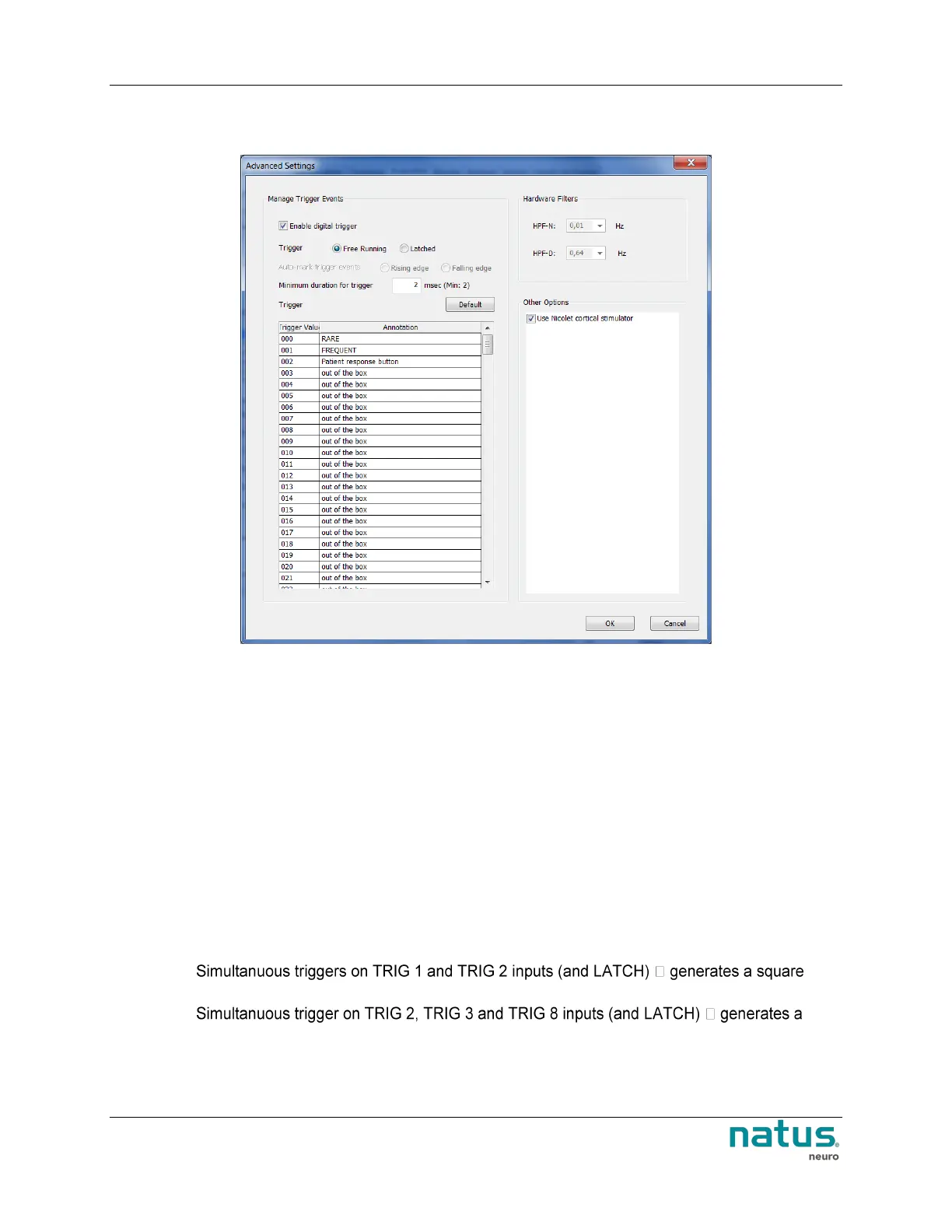 applied to the Latch input. An event is also inserted in the NeuroWorks study. For example: