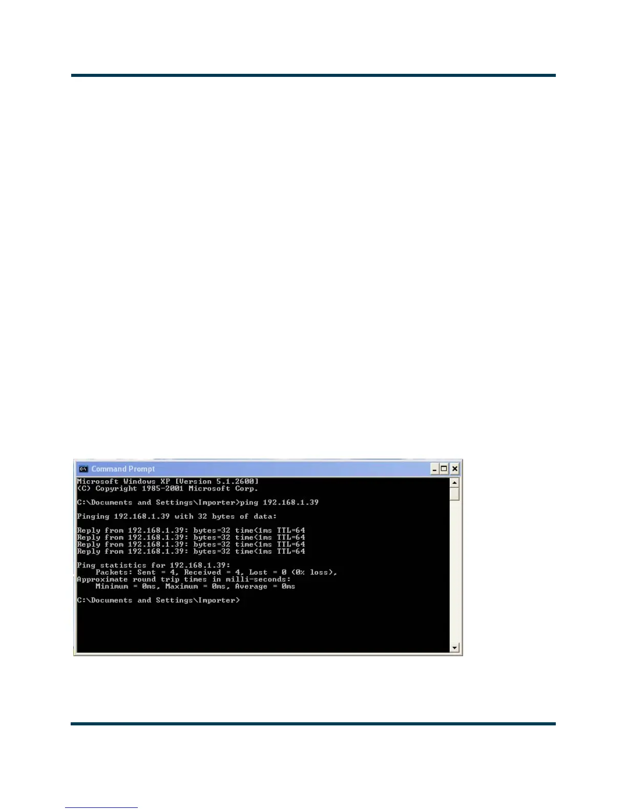 •The ping command should show the status of four packets sent to the Importer Plus. If