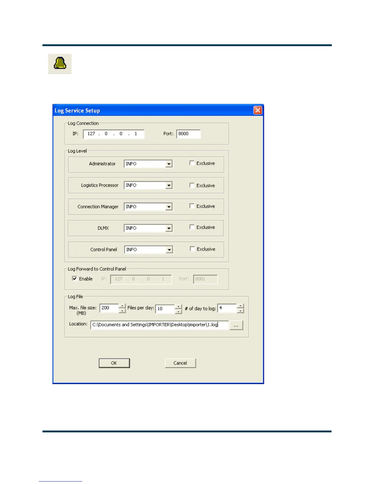 Figure 8.4: Log Service Setup Screenl