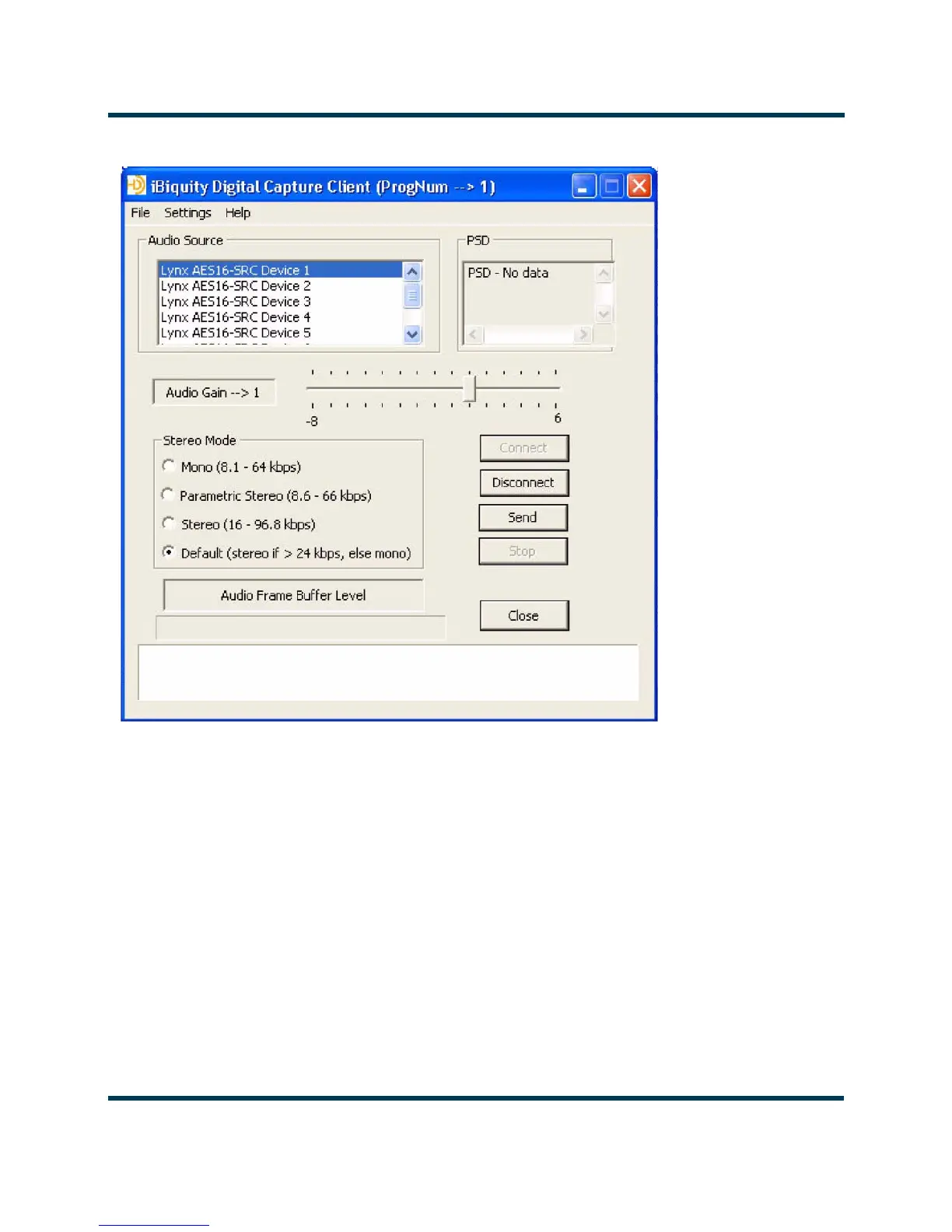 6. Use the Settings pull-down menu to configure several parameters of the SPS Capture Client