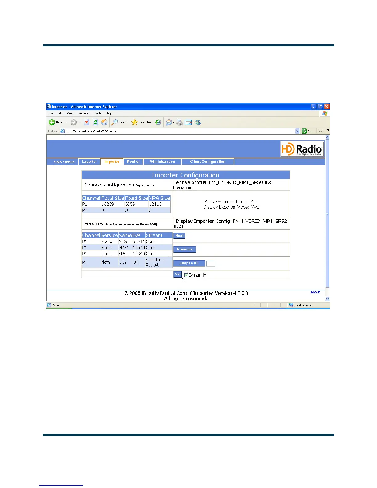 The Importer page (see Figure 8.11) displays current configuration and allows the user to change the