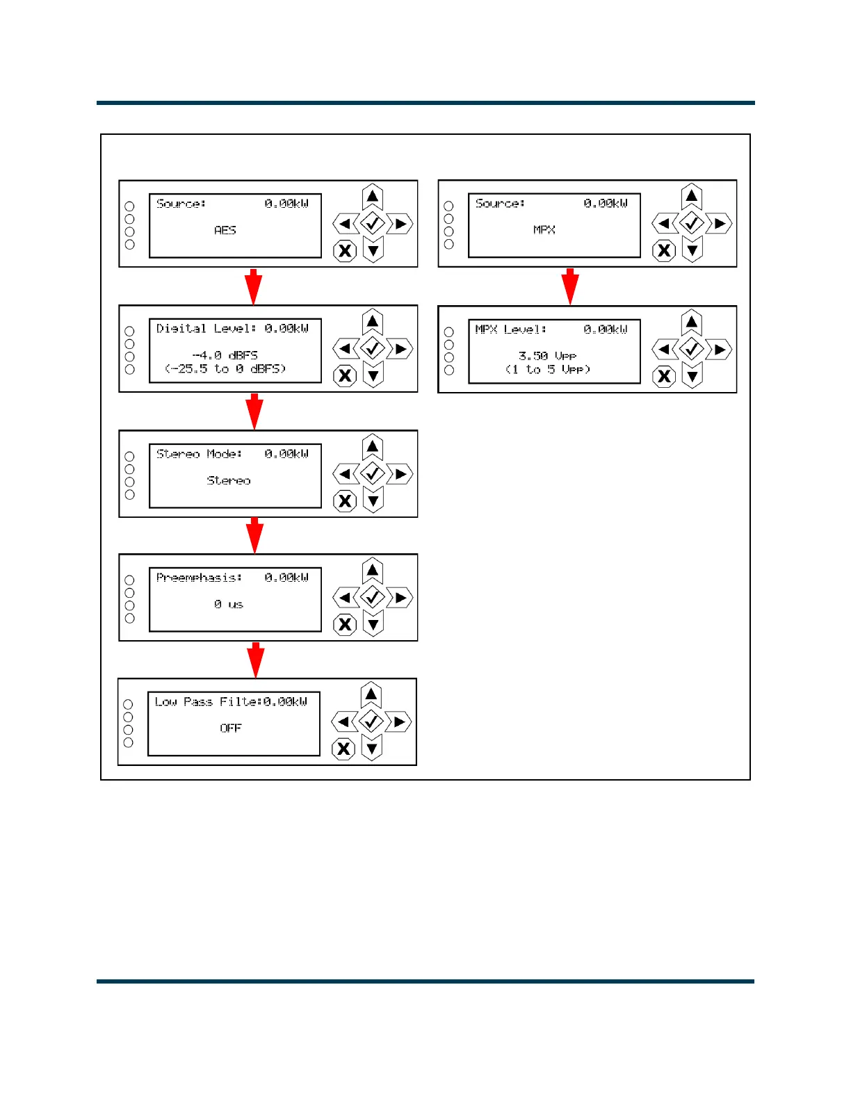 Figure 2.9.2: Audio Setup Screens (AES or MPX)