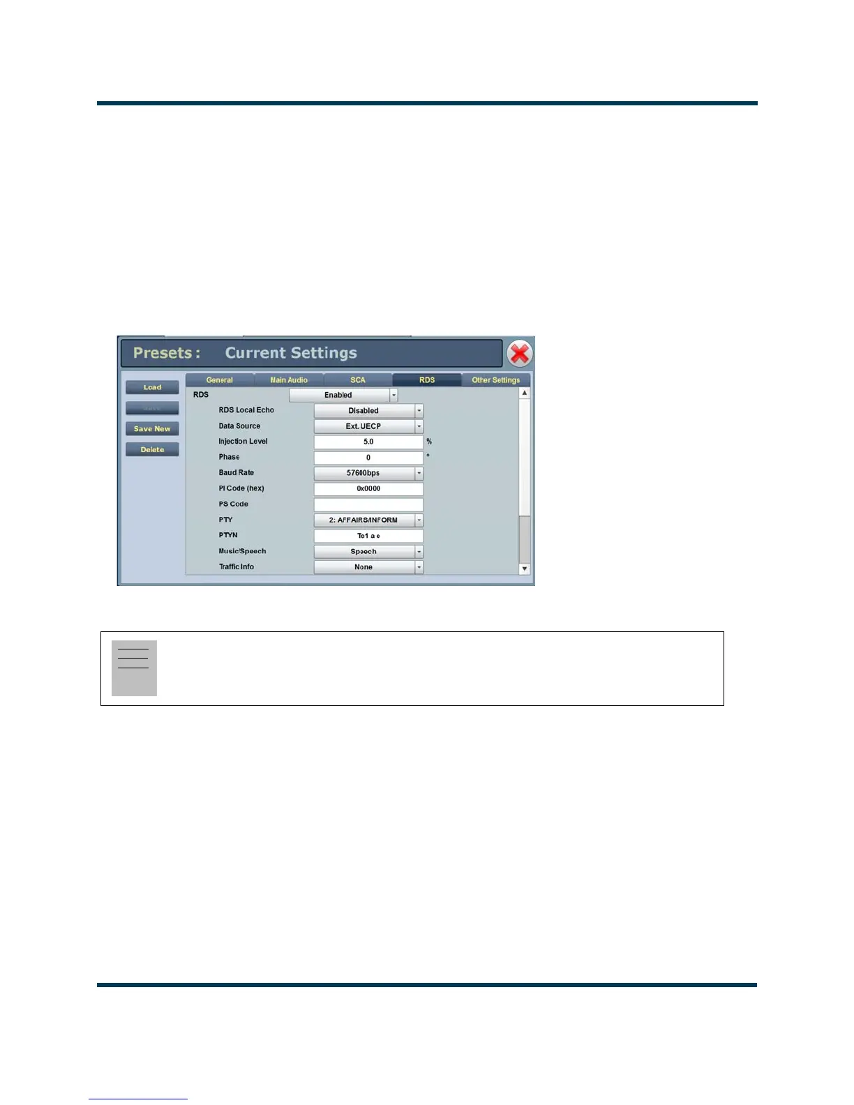 –RDS Local Echo: select Enabled or Disabled. When Enabled, the exciter
