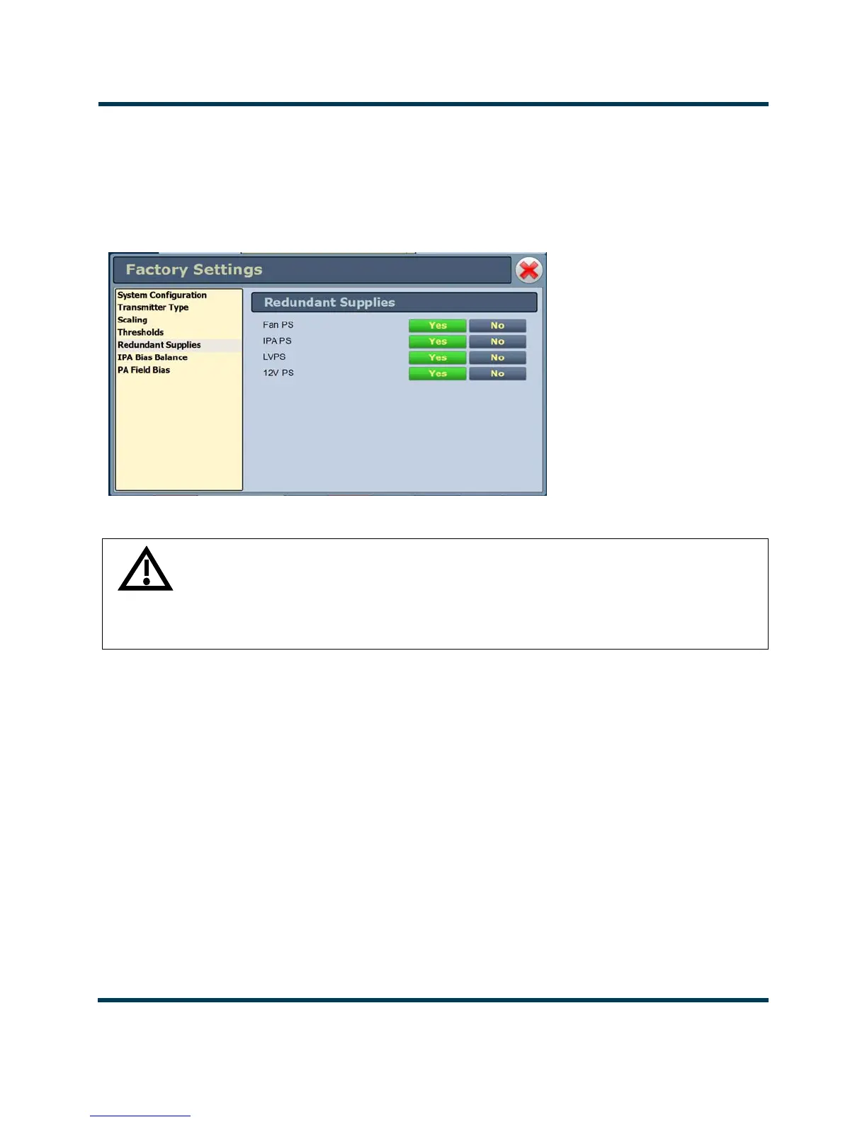 Figure 2.48: Factory Settings - Redundant Supplies