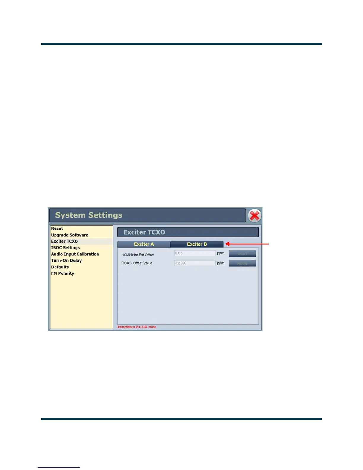 Figure 2.54: System Settings - Exciter TCXO