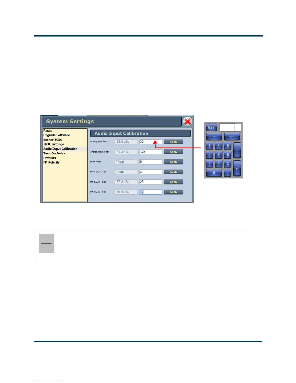 associated audio input source is connected). Enter the calibration value and press Apply to save