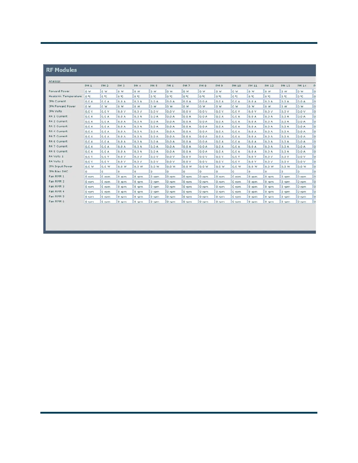 and producing RF power (i.e., LED is not solid green). Record which RF power modules are