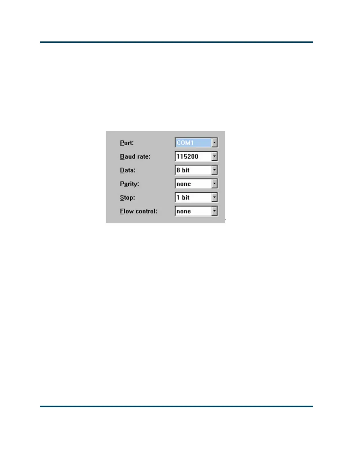 3. Run the terminal program. Set up the available serial port on the PC with settings as