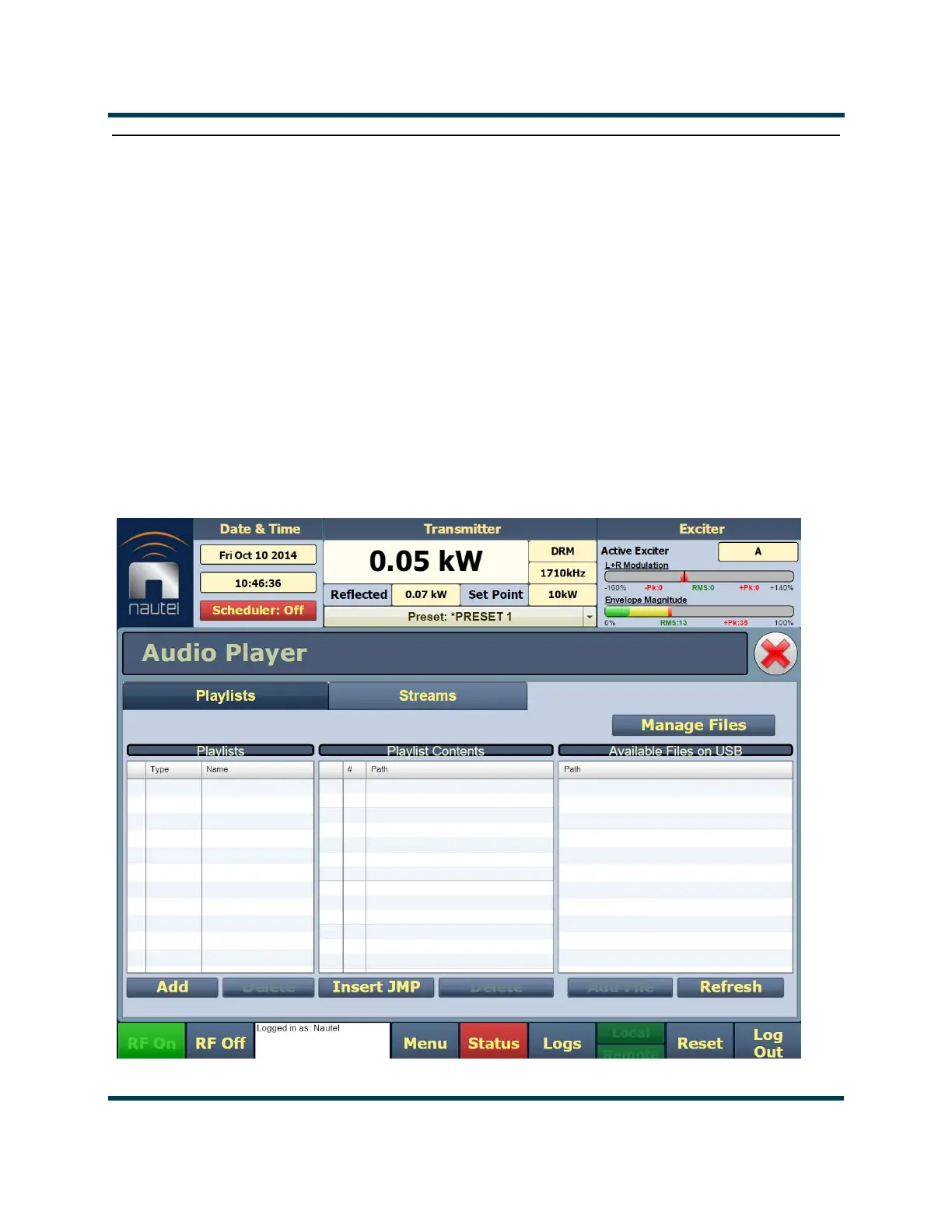 The built-in audio player (see Figure 2.95) can use a file playlist, Livewire or Icecast as an audio