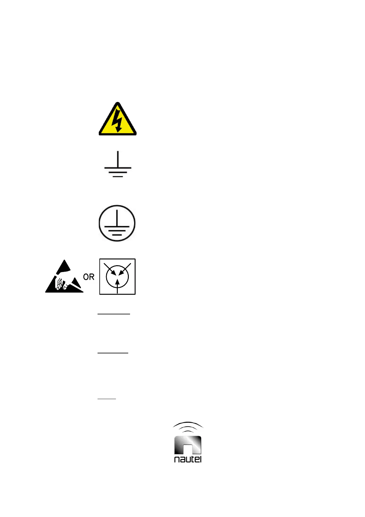 Indicates dangerous voltages (in excess of 72 V), capable of causing a fatal