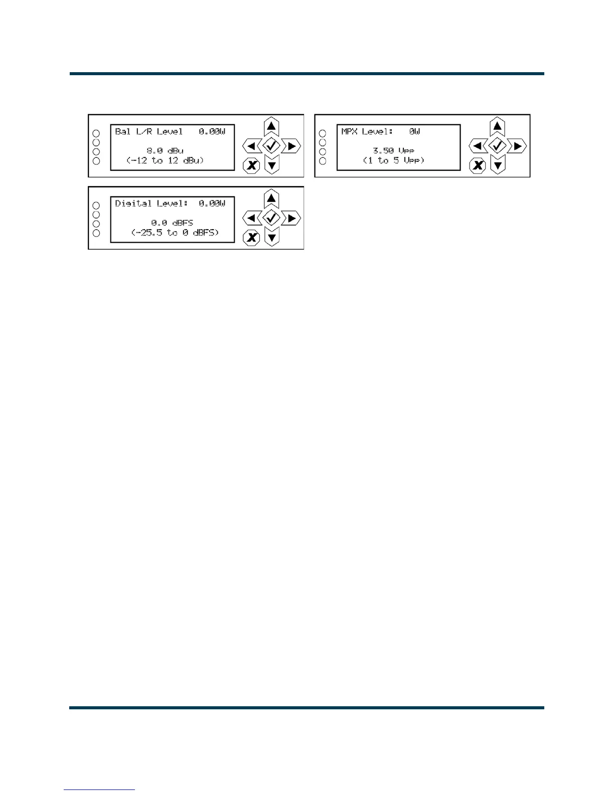 • Bal L/R Level: Select a level between -12 and 12 dBu.
