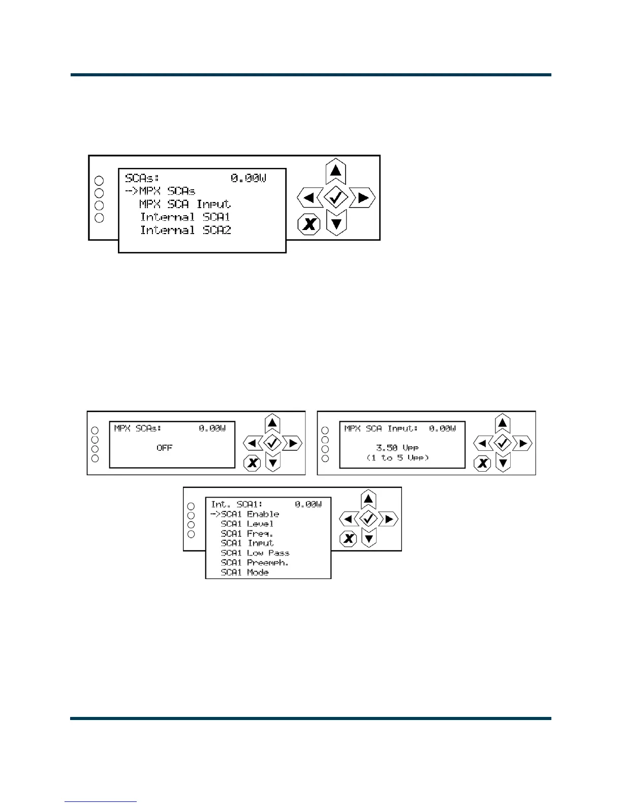• MPX SCA Input: Select a level between 1 and 5 V peak-to-peak (of MPX SCAs is ON).