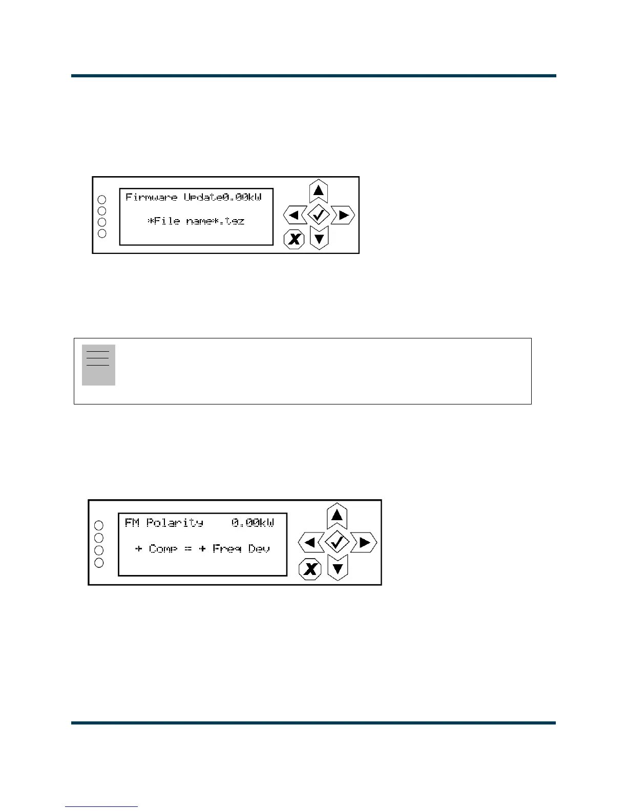 From the front panel UI, you can update firmware used in the transmitter. To perform a firmware