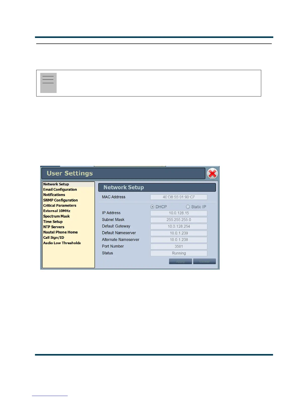 Figure 2.96: User Settings Menu (Network Setup Page Shown)