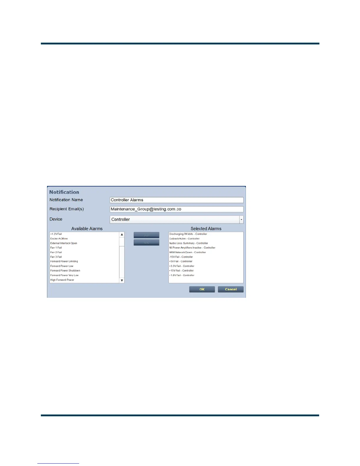 list. An email is issued when any alarm in the Selected Alarms list is active.