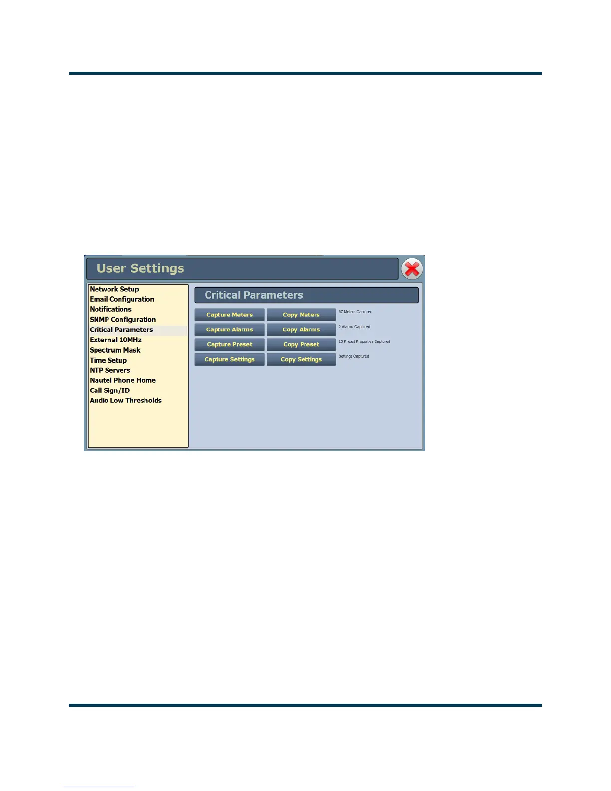 You can capture critical parameter data for the transmitter’s current state using the AUI’s Critical