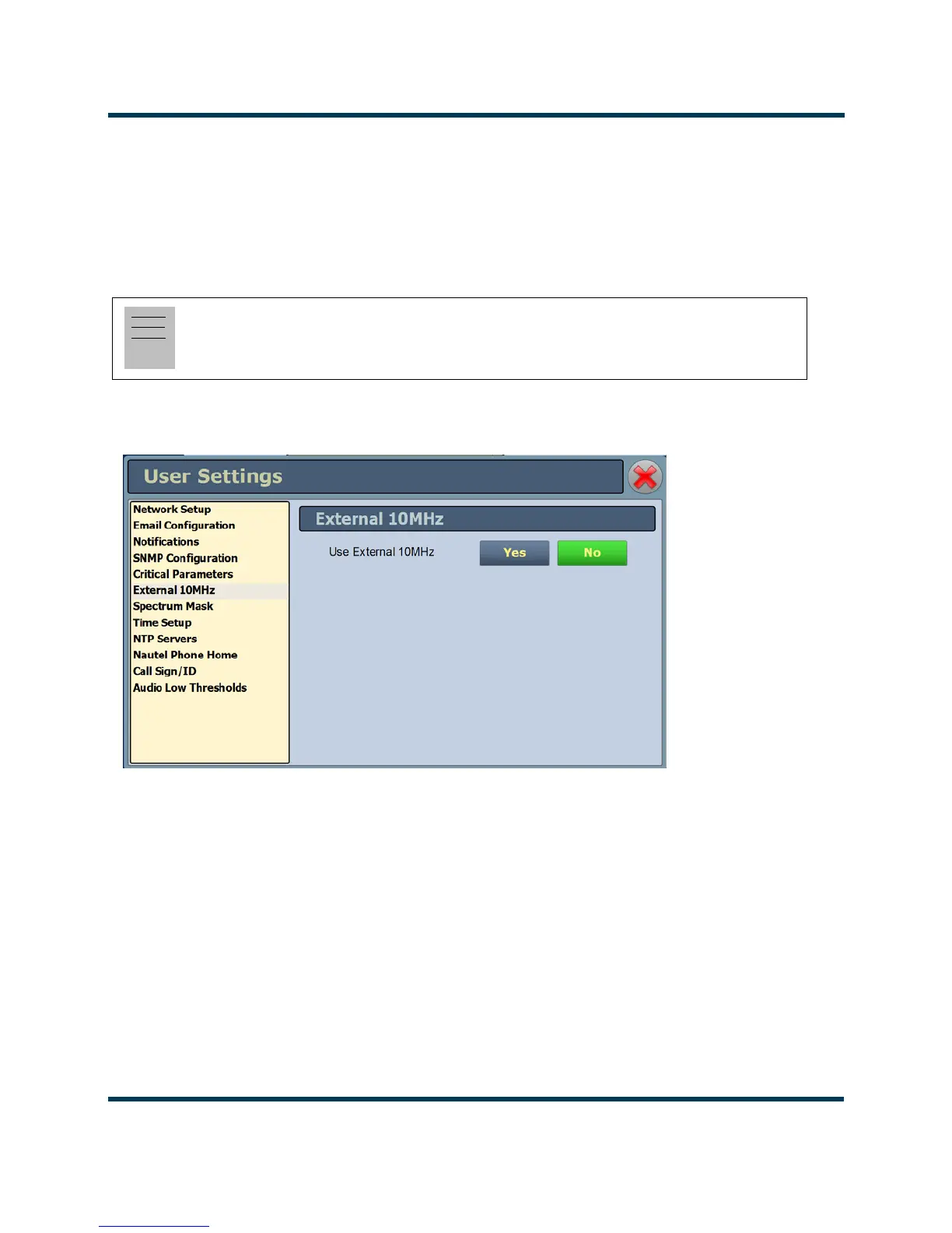Figure 2.106: User Settings - External 10MHz (Default shown)