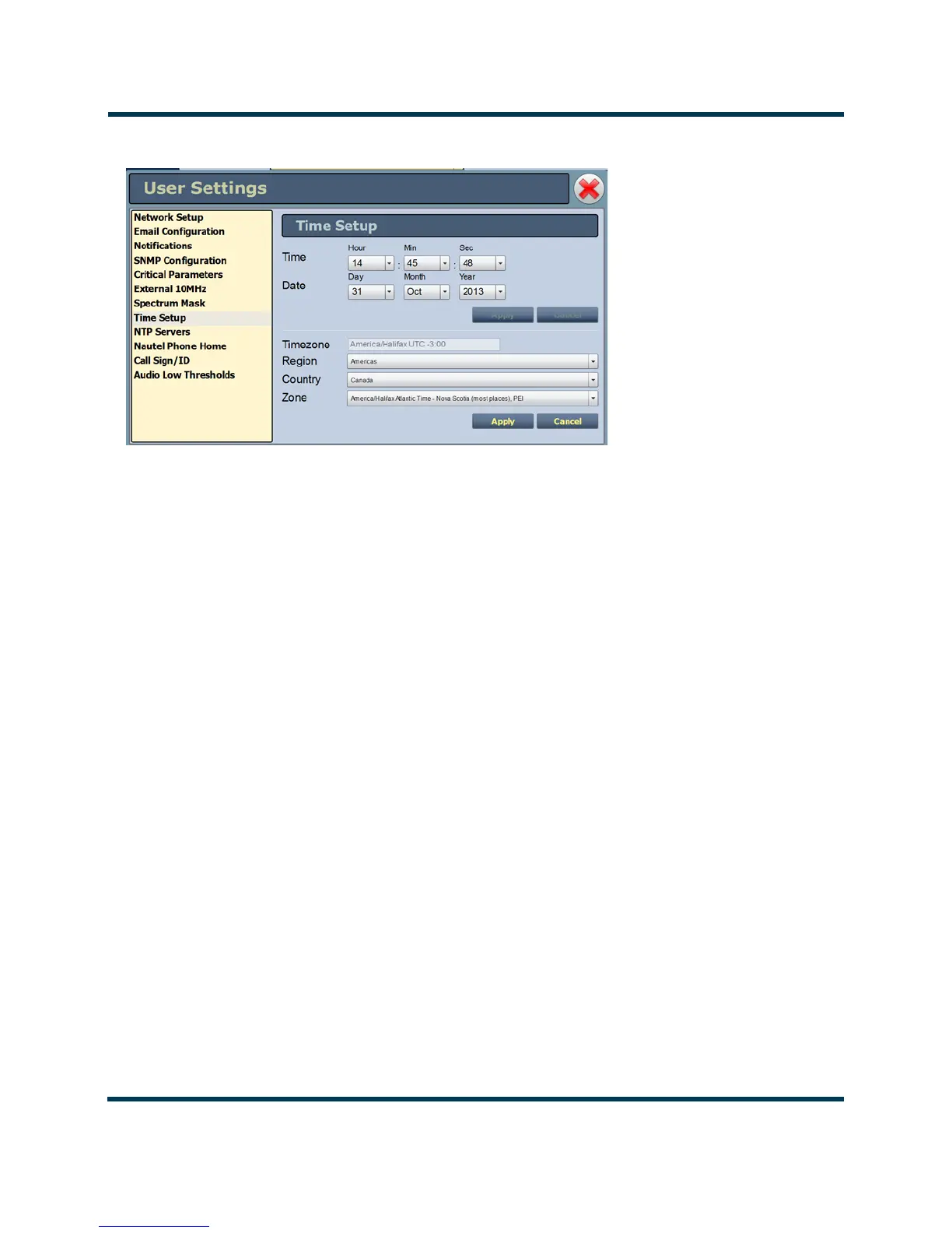 2. Enter Time and Date parameters and press Apply. Press Cancel to discard changes. Please