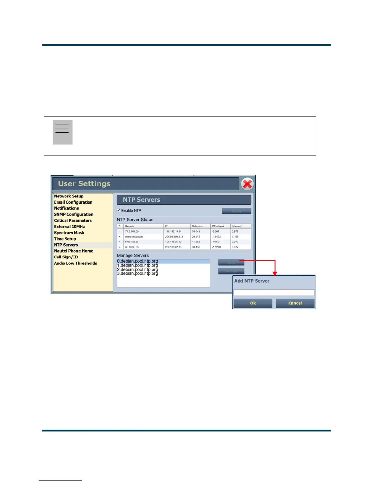 page (see Figure 2.112), select NTP Servers from the User Settings options. There are