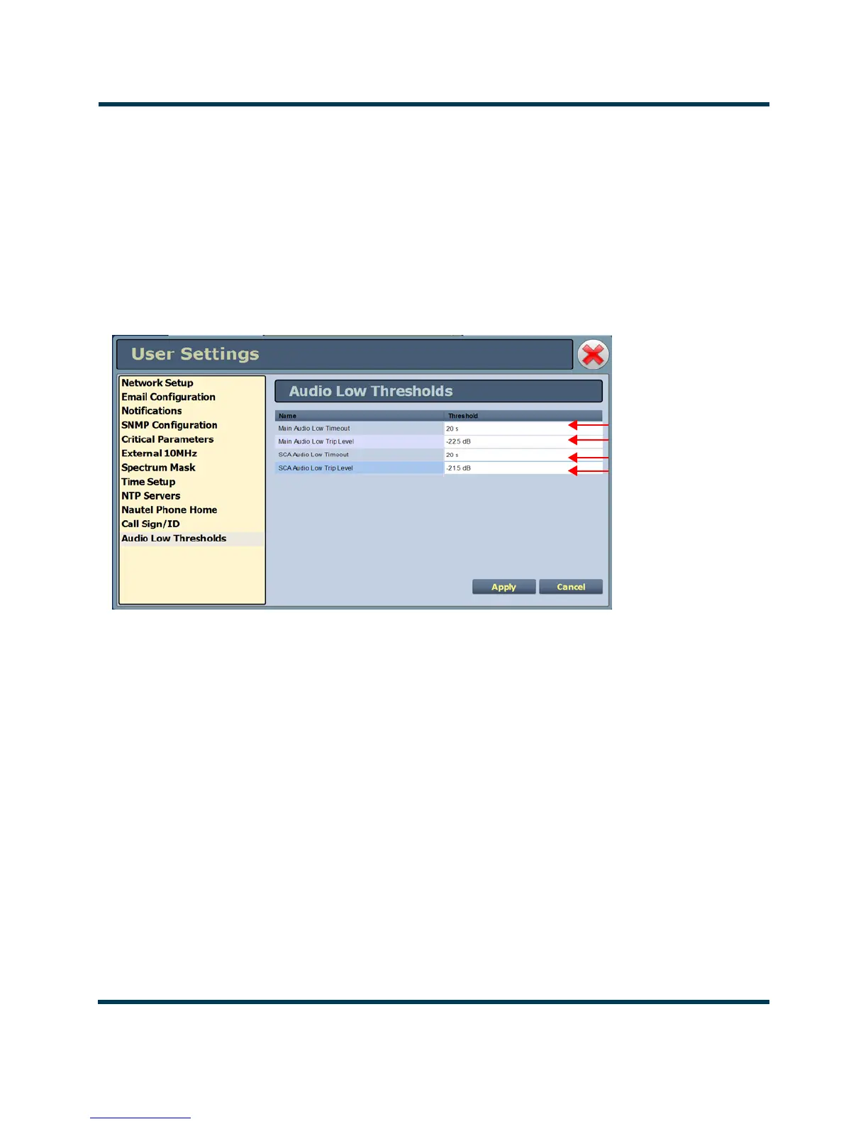 Figure 2.116: User Settings - Audio Low Thresholds
