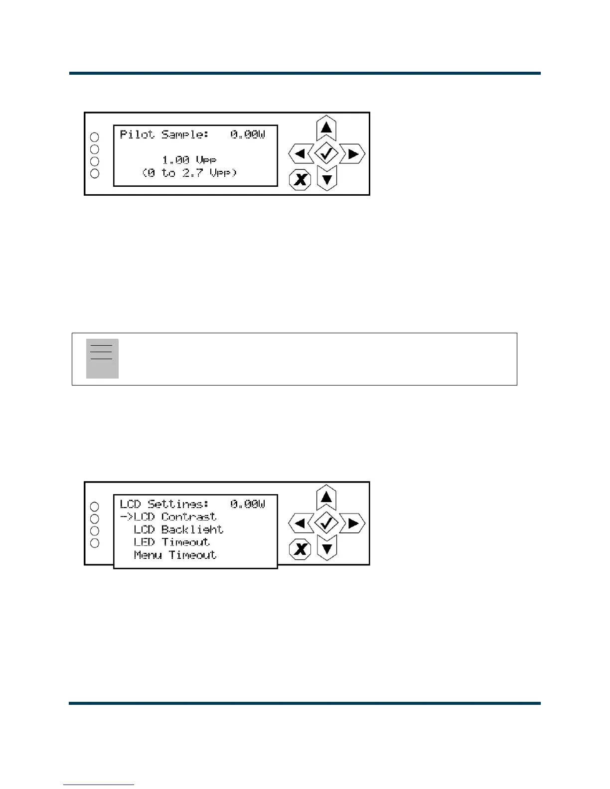 Use the up and down buttons to edit the pilot sample level between 0 and 2.70 V peak-to-peak (in