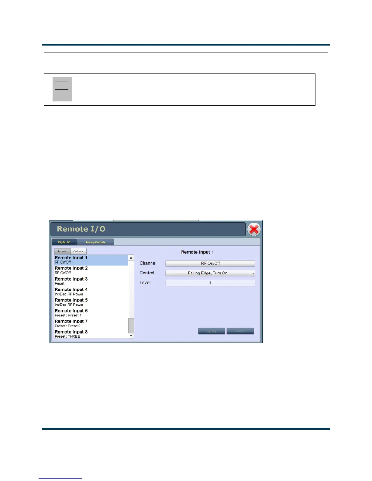 To view the Remote I/O page (see Figure 2.129), select Remote I/O from the Menu options. Click X