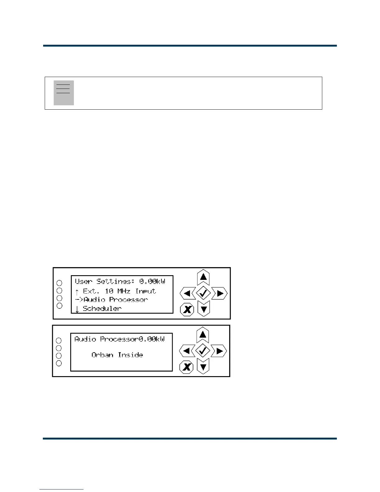 2. In the Audio Processor screen( see Figure 2.147), use the up and down buttons to toggle