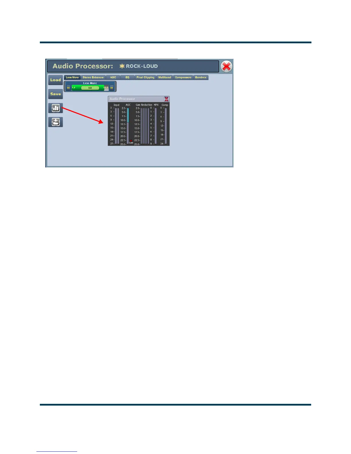 The following tabs (and referenced Figure numbers) are available on the Audio Processor page. Each