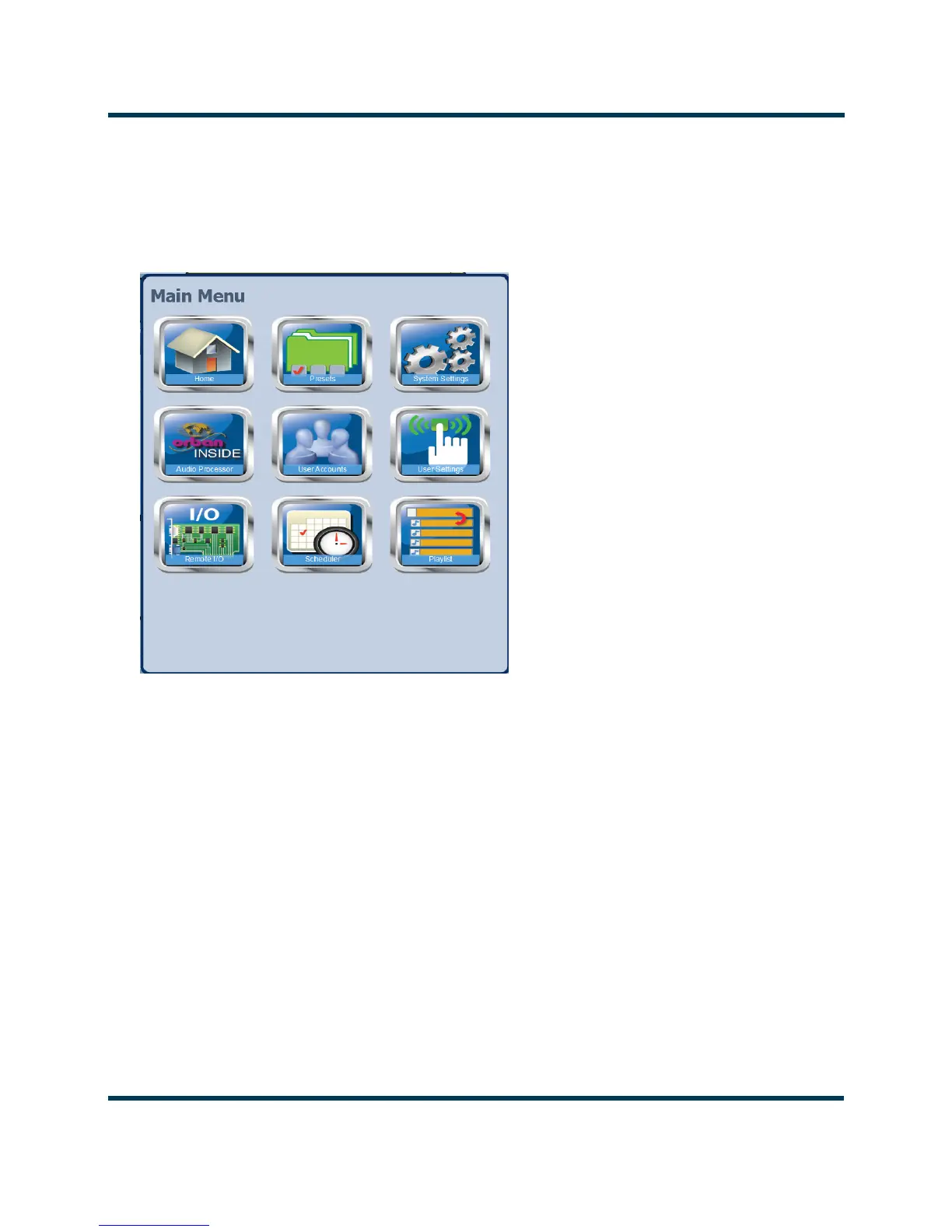 From the home page, click the Menu button to view the Menu page (see Figure 2.8). From this page,
