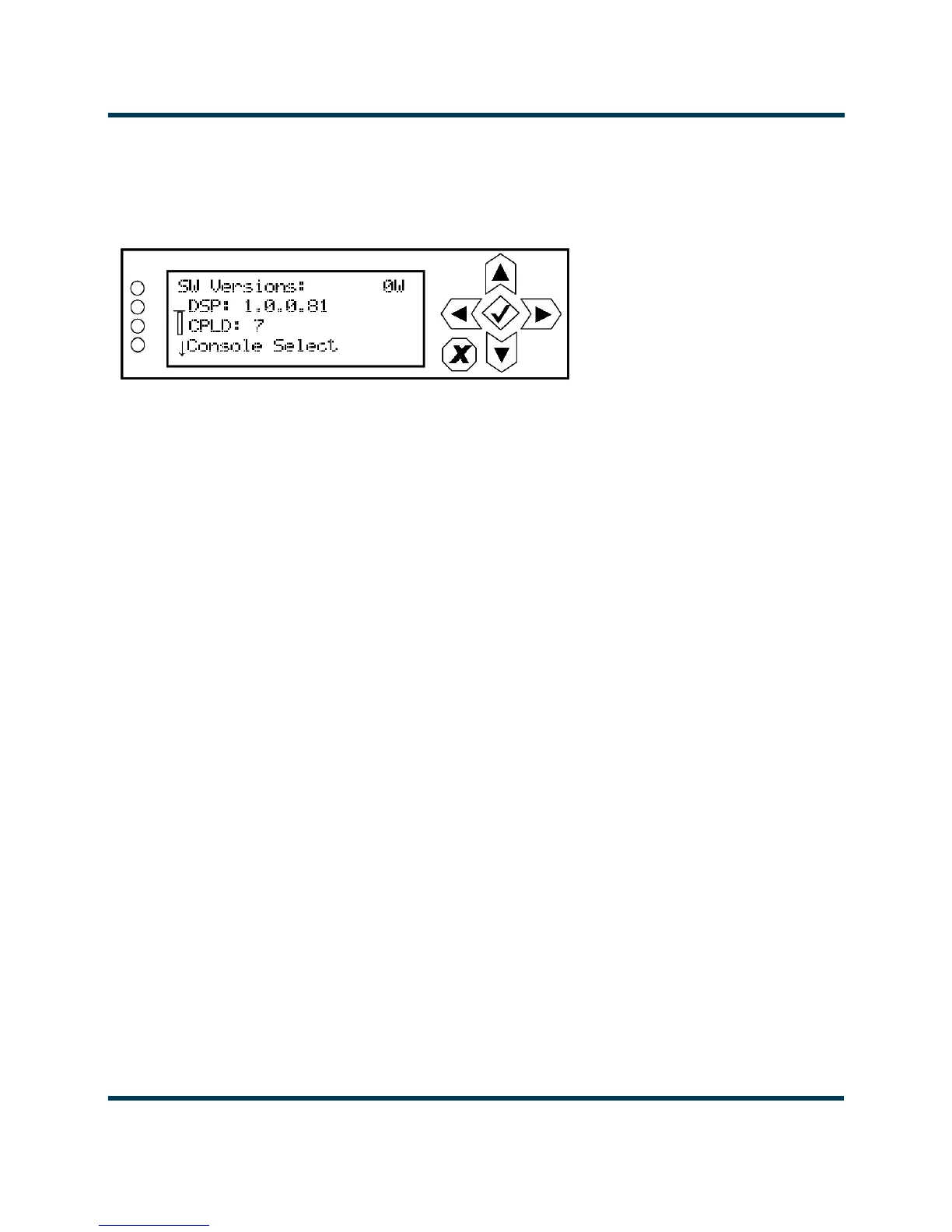 View Software Versions - front Panel UI. The View SW Versions screen displays the current
