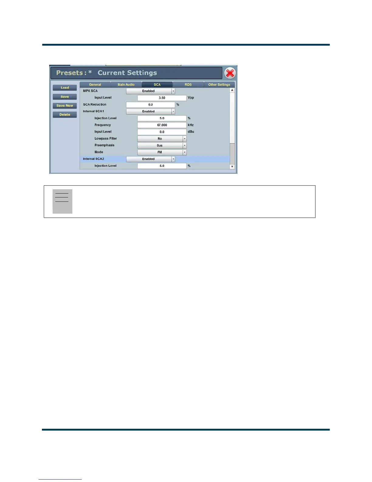 Refer to FCC guidelines for allowable modulation depth with SCAs or RDS enabled.