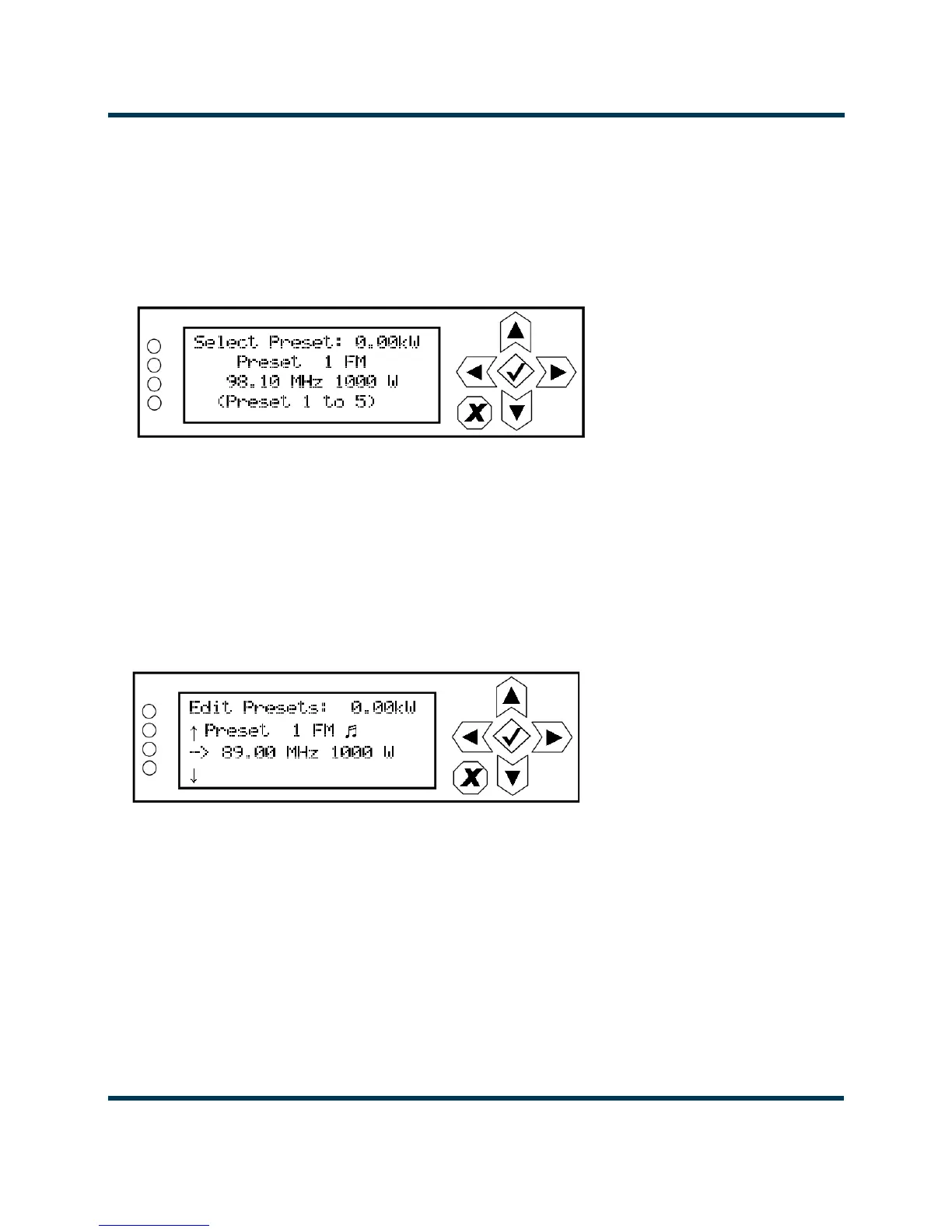 ton to enable the preset as the transmitter’s active preset. Press the cancel (X) button to return to the