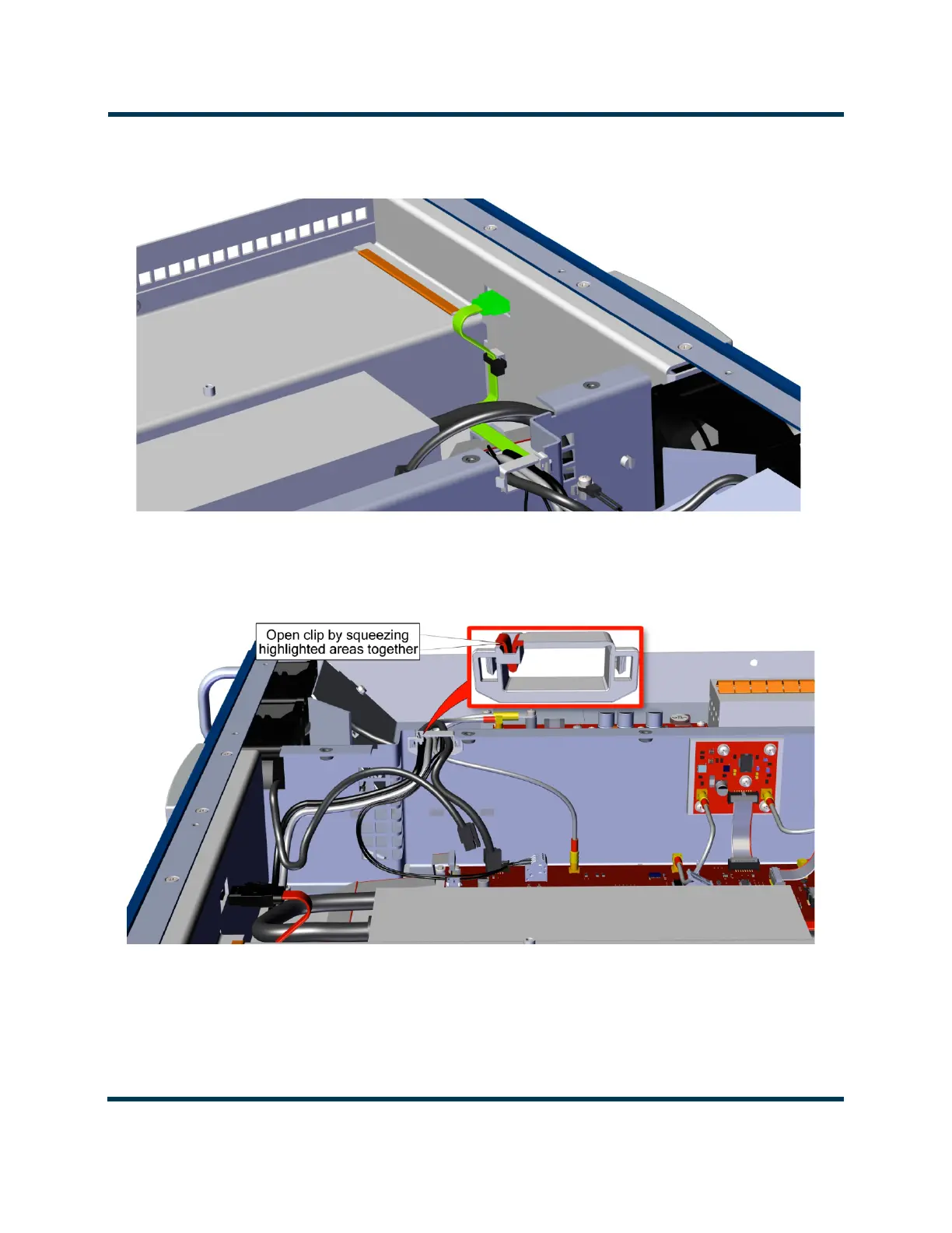 10. Release the Fan wiring securing clamp by squeezing the clamp together. See Figure 3.1.28.