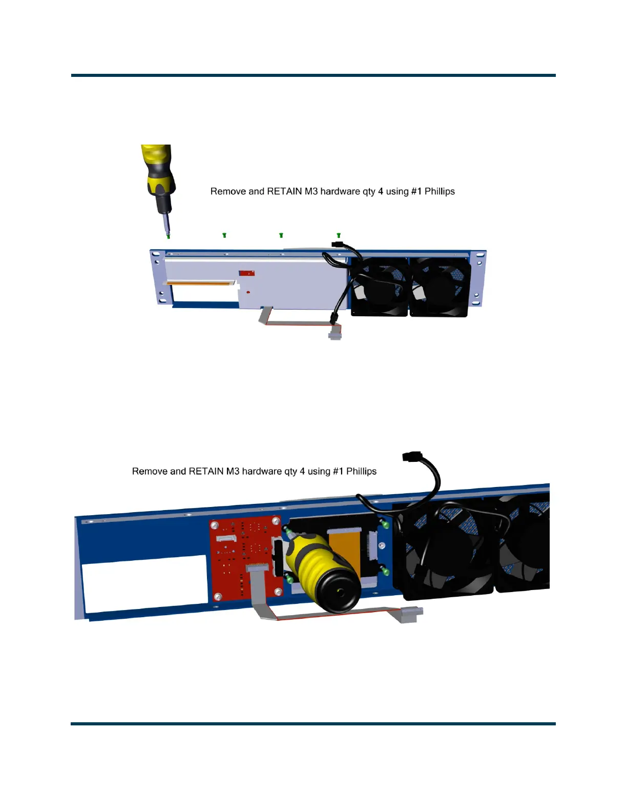 13. Remove and retain the four M3 screws securing the FPUI bracket to the front panel. See