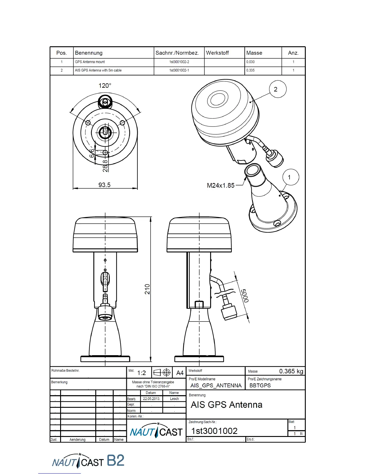 NAUTICAST B2 - GPS Antenna Specifications
