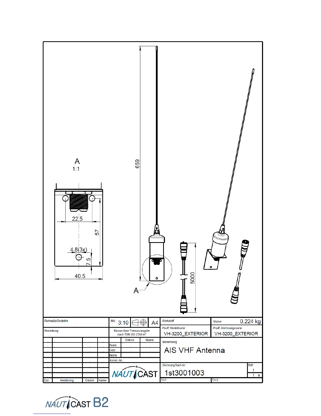 NAUTICAST B2 - VHF Antenna Specifications