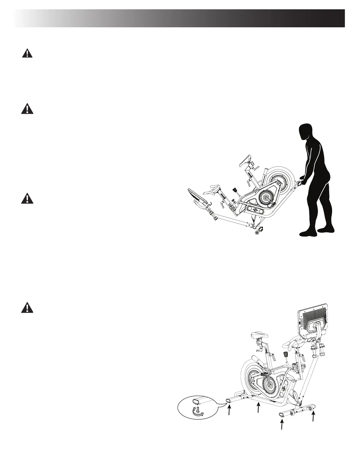 The machine needs to be leveled if your workout area is uneven. Levelers are found on each side of the stabilizers. Lift the stabilizer slightly to take
