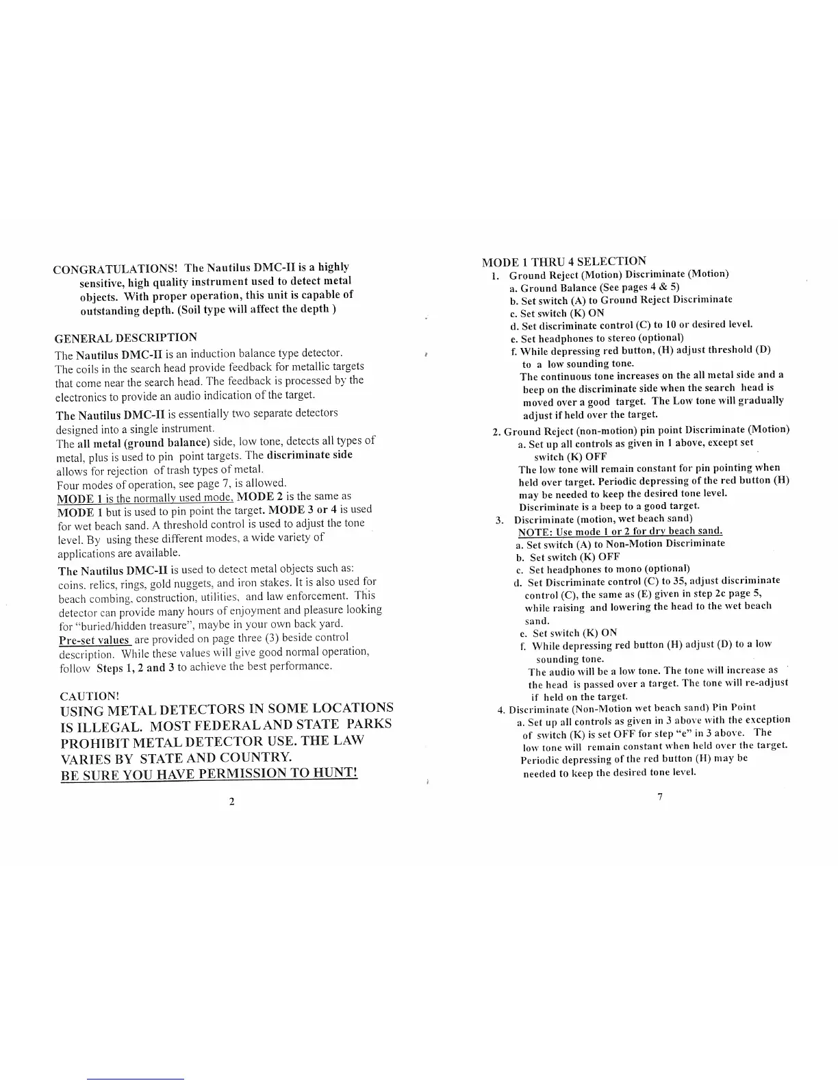 Nautilus DMC-II - General Description; Detector Technology; Modes of Operation Overview; Safety Precautions