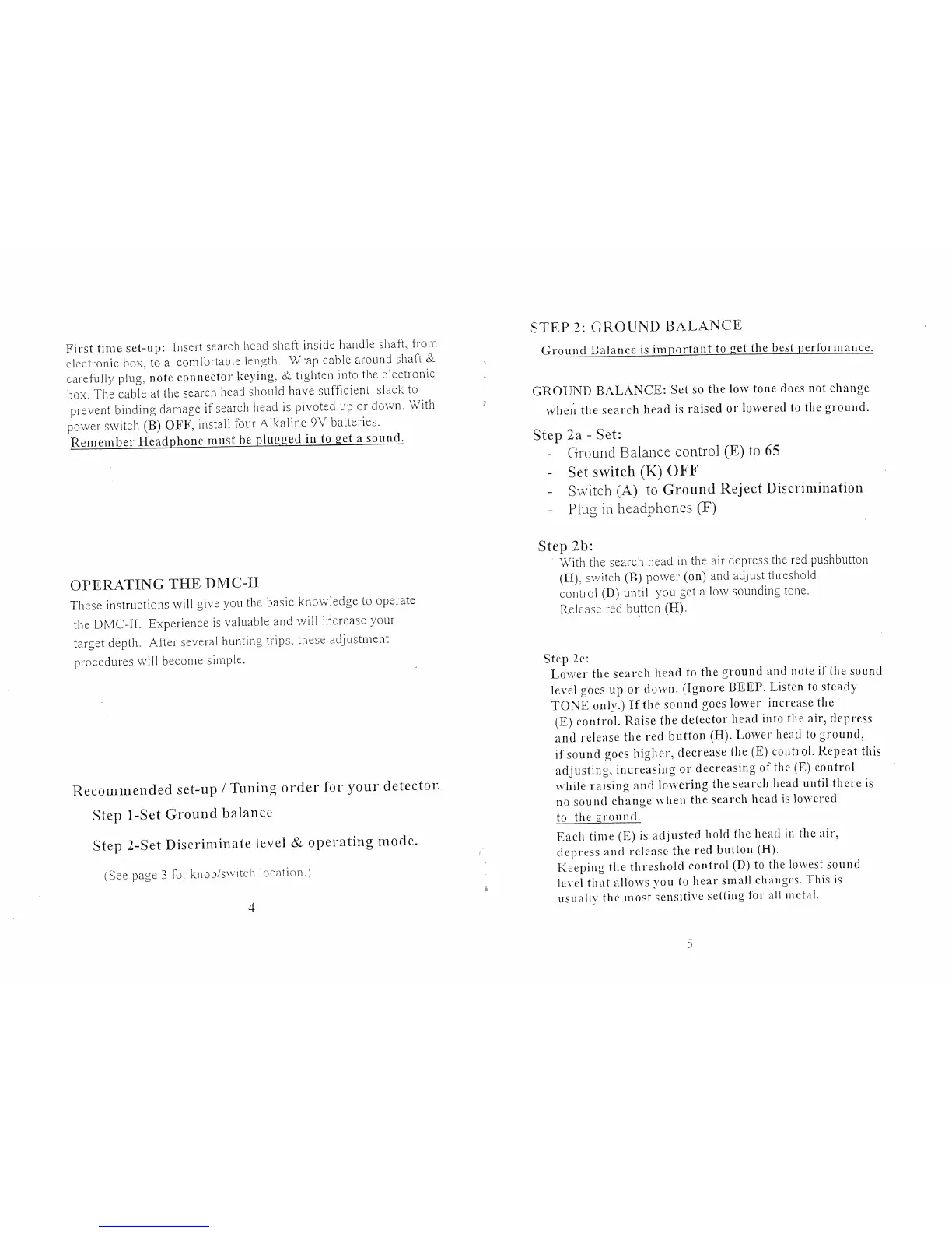 Nautilus DMC-II - Operating the DMC-II; Initial Setup; Recommended Tuning Order; Ground Balance Procedure