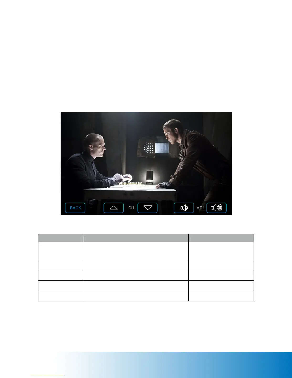 CH DOWN Tap the Channel Up button to change channel Channel changed