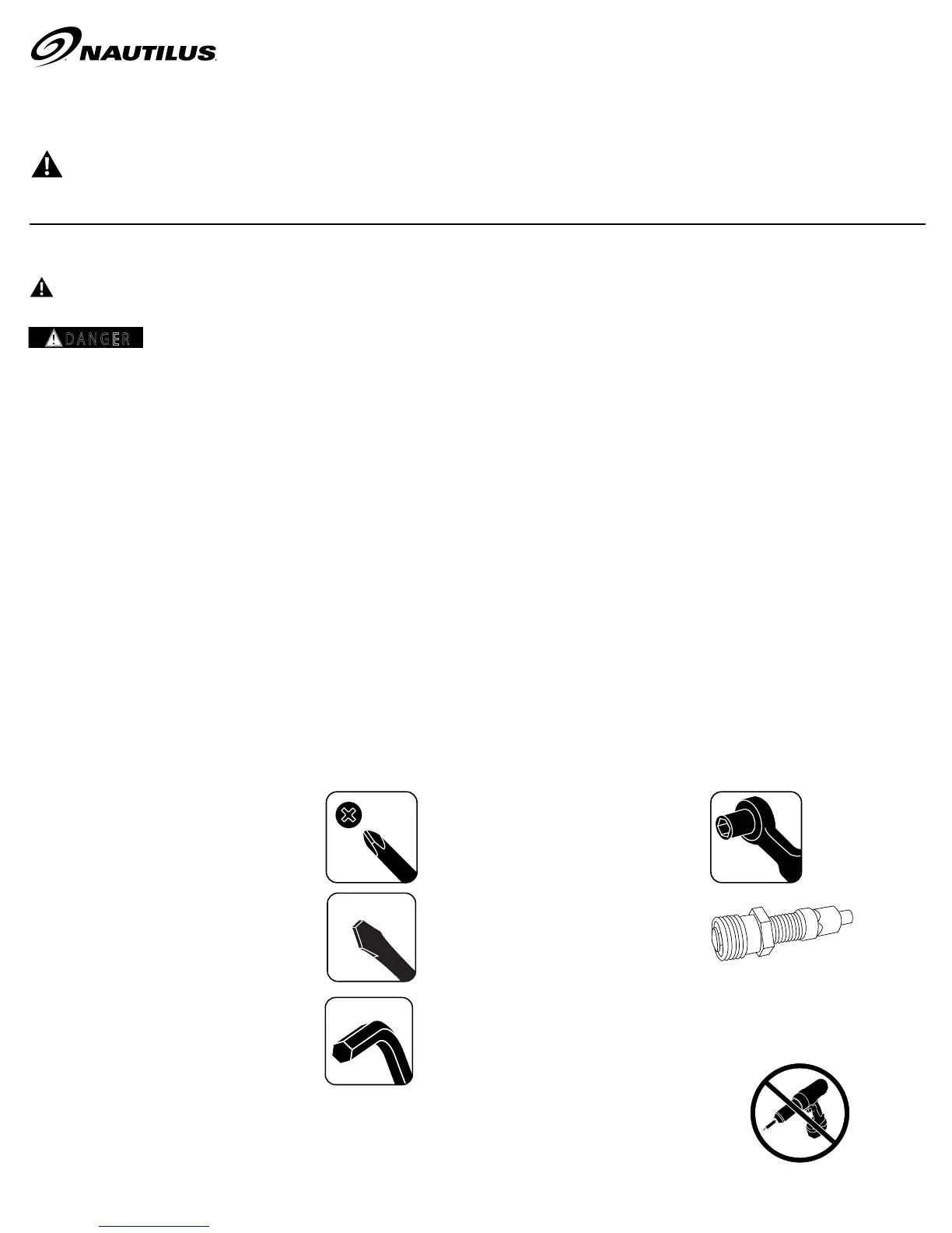• If replacement parts are necessary, use only genuine Nautilus replacement parts and hardware. Failure to use genuine replacement parts
