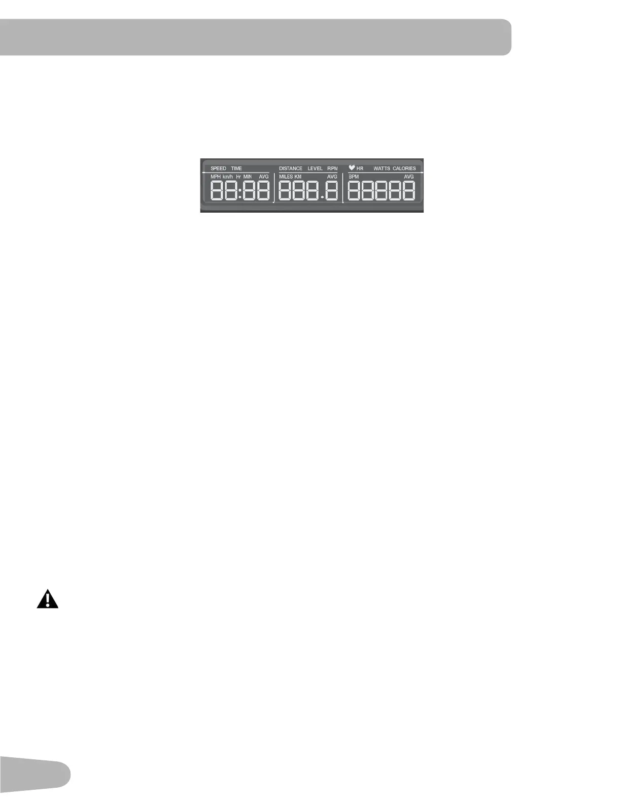 TheLowerDisplayshowstheWorkoutValuesandcanbecustomizedforeachUser(Consultthe“EditUserProle”