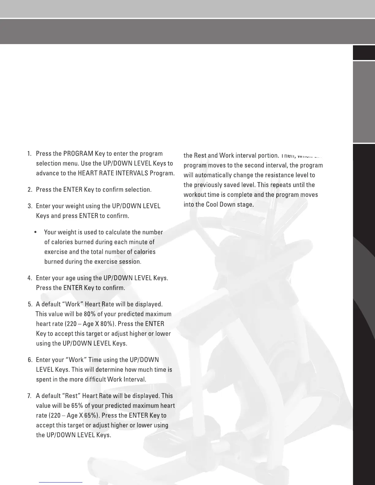 heart rate (220 – Age X 80%). Press the ENTER