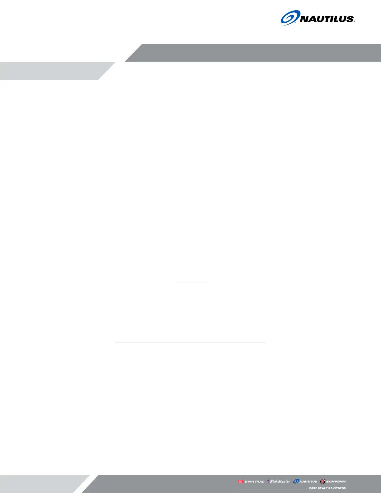 from CORE HEALTH & FITNESS, LLC, for inspection shall be borne solely by the original purchaser. Any repair or modifica-